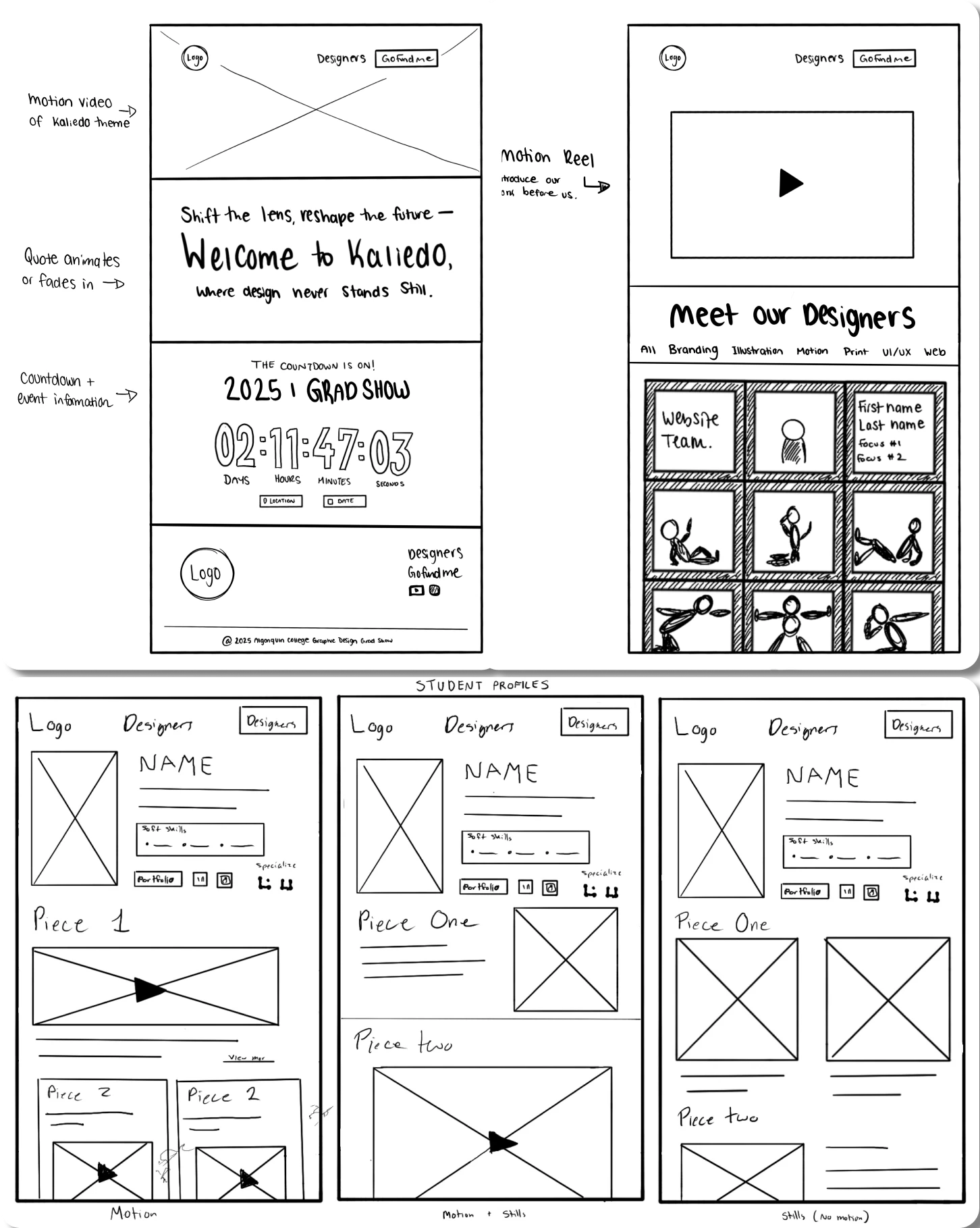 Start of sketches for the Grad Show Website.